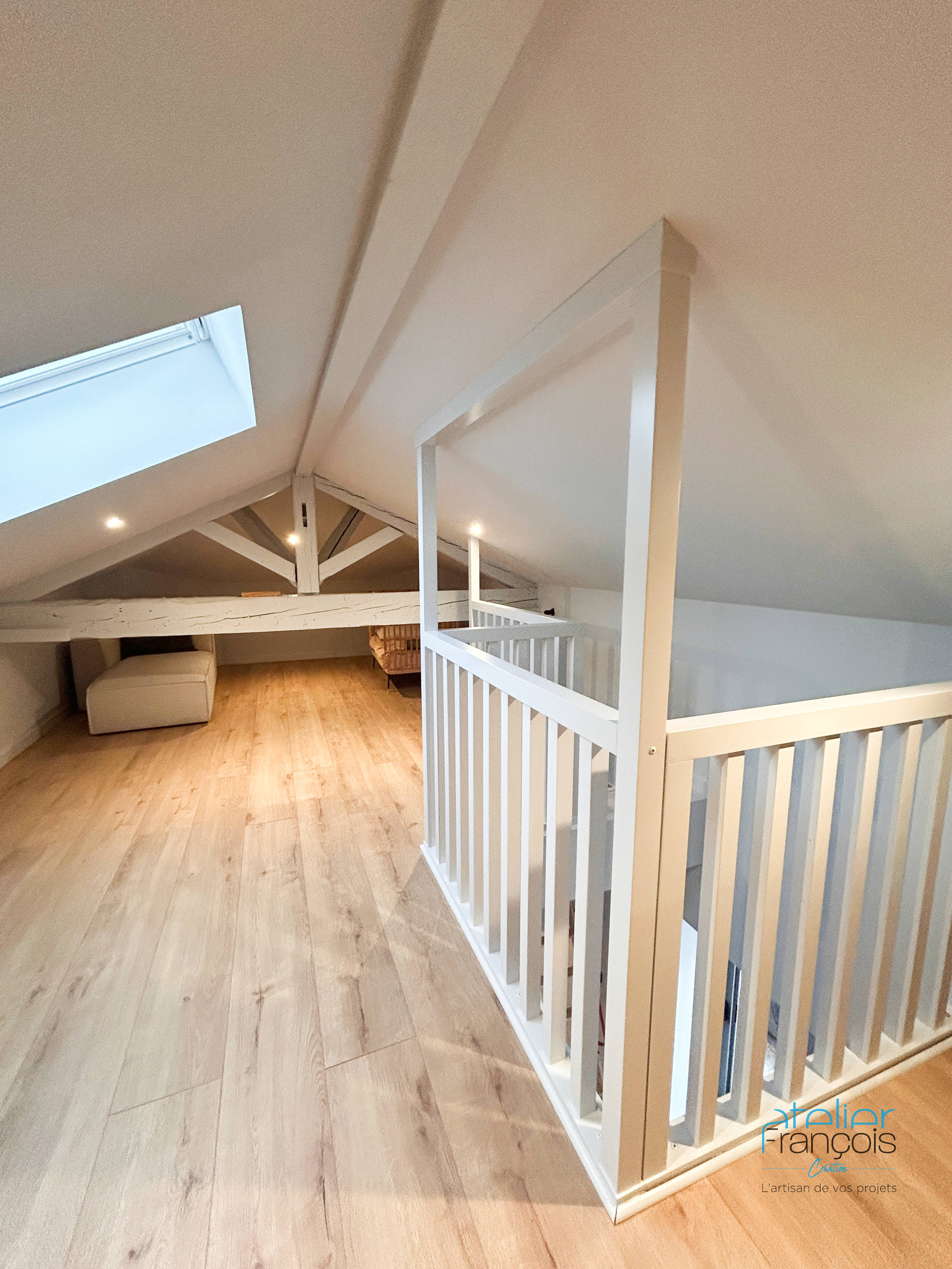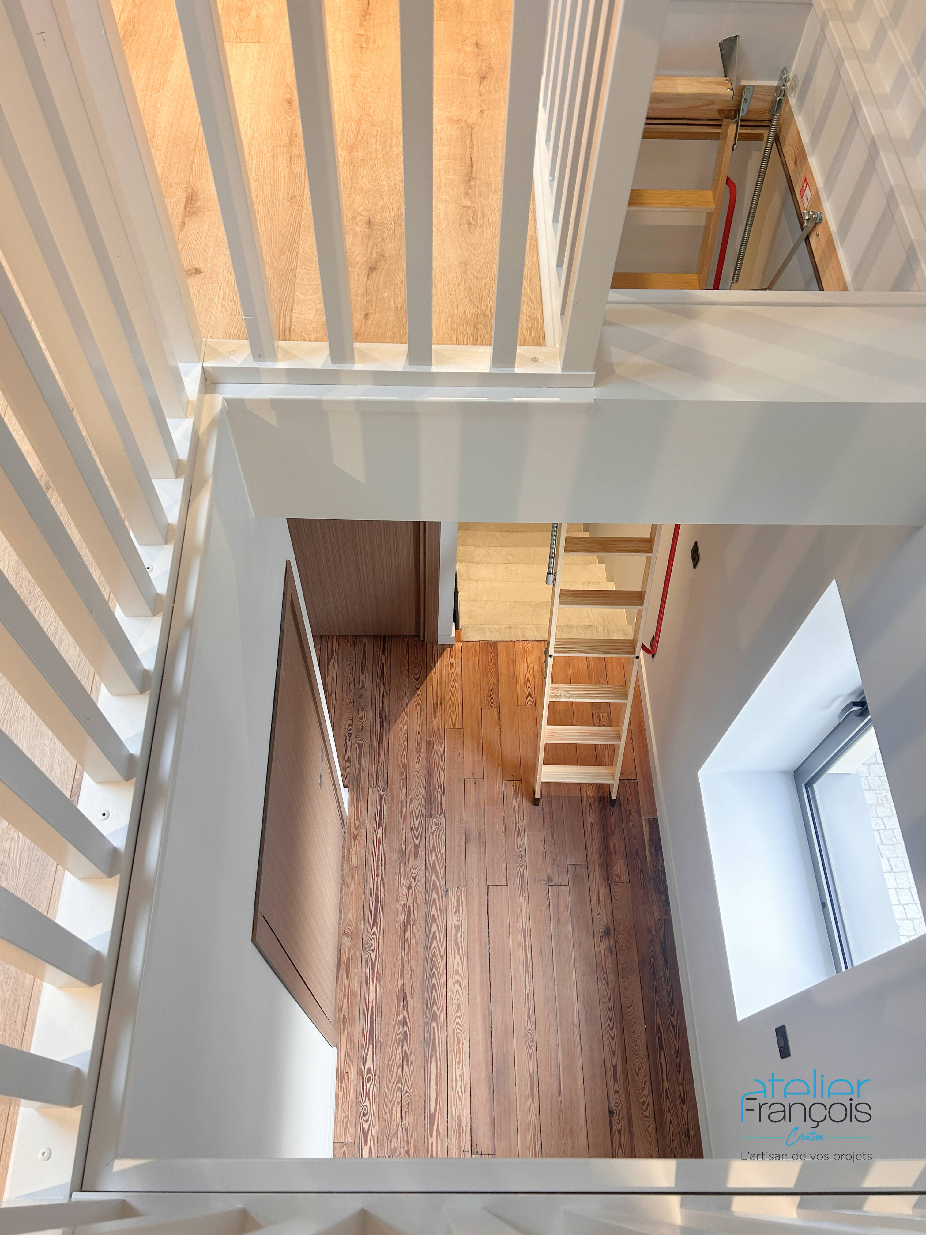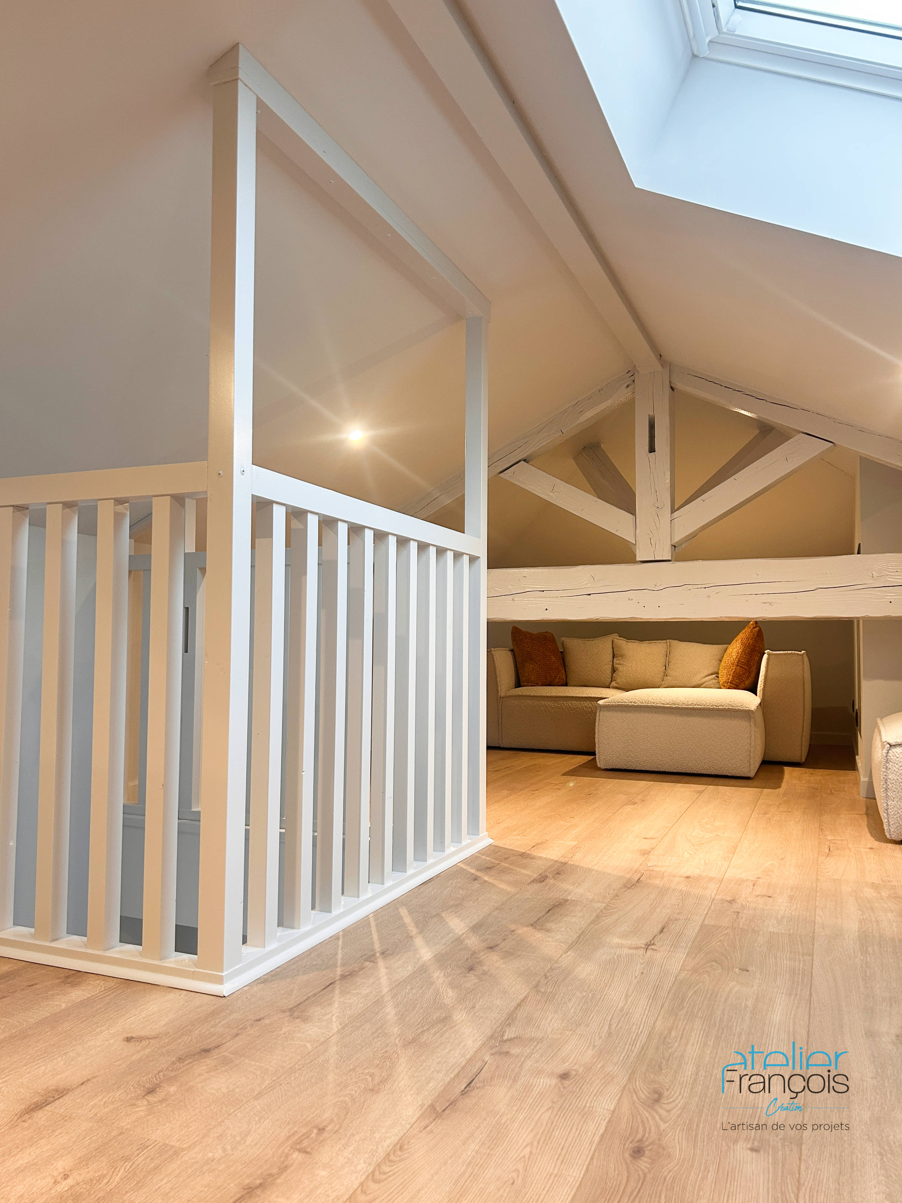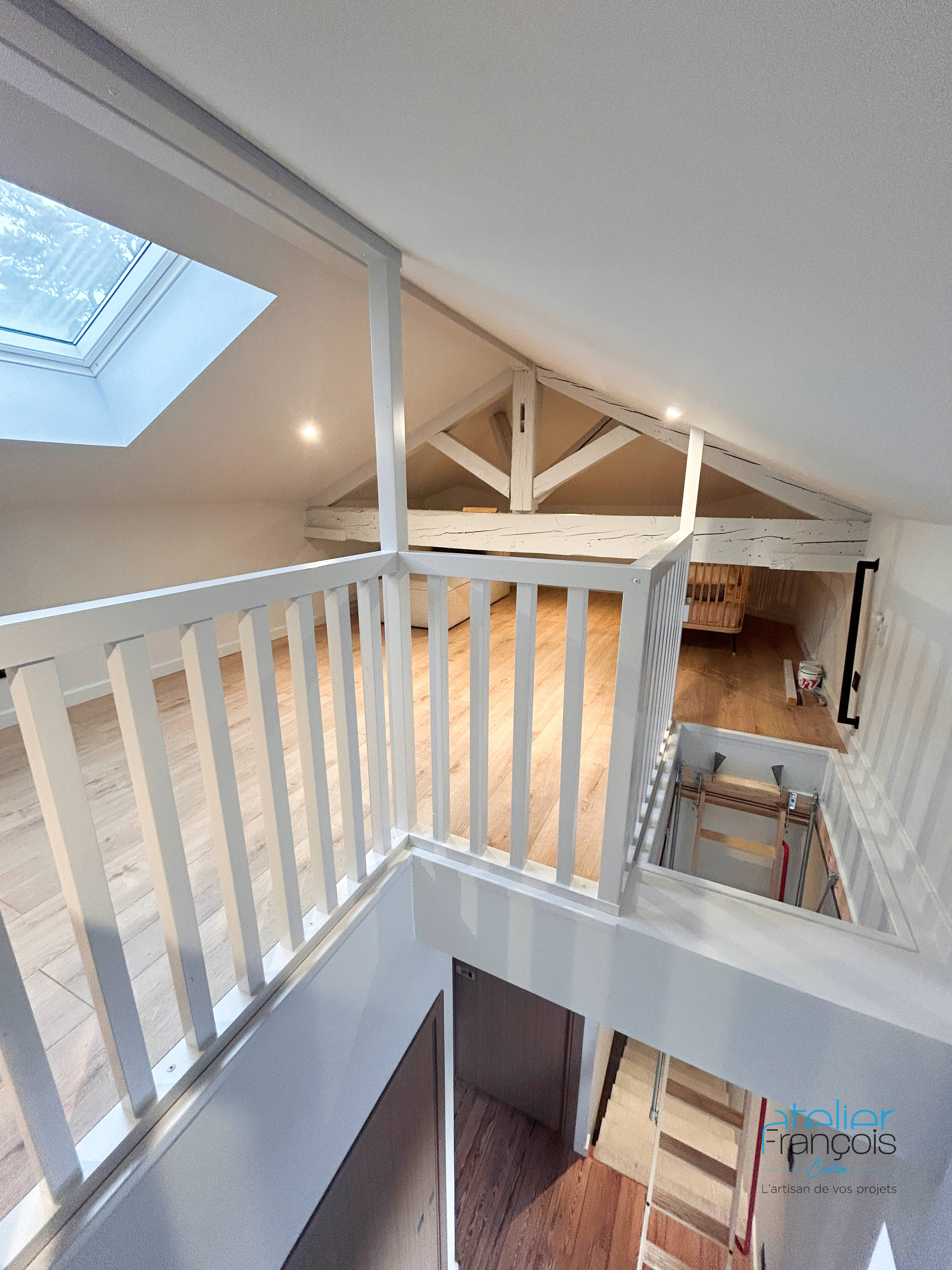 ✔️ Fabrication et pose d’un garde-corps entièrement sur mesure, réalisé par notre menuisier. L’objectif : allier esthétique, qualité des matériaux et sécurité, tout en respectant le style de la pièce.